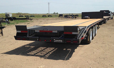 Oasis step deck trailers in many sizes and axle combinations for your flat-deck or semi-truck with electric, electric/hydraulic, or air brakes.